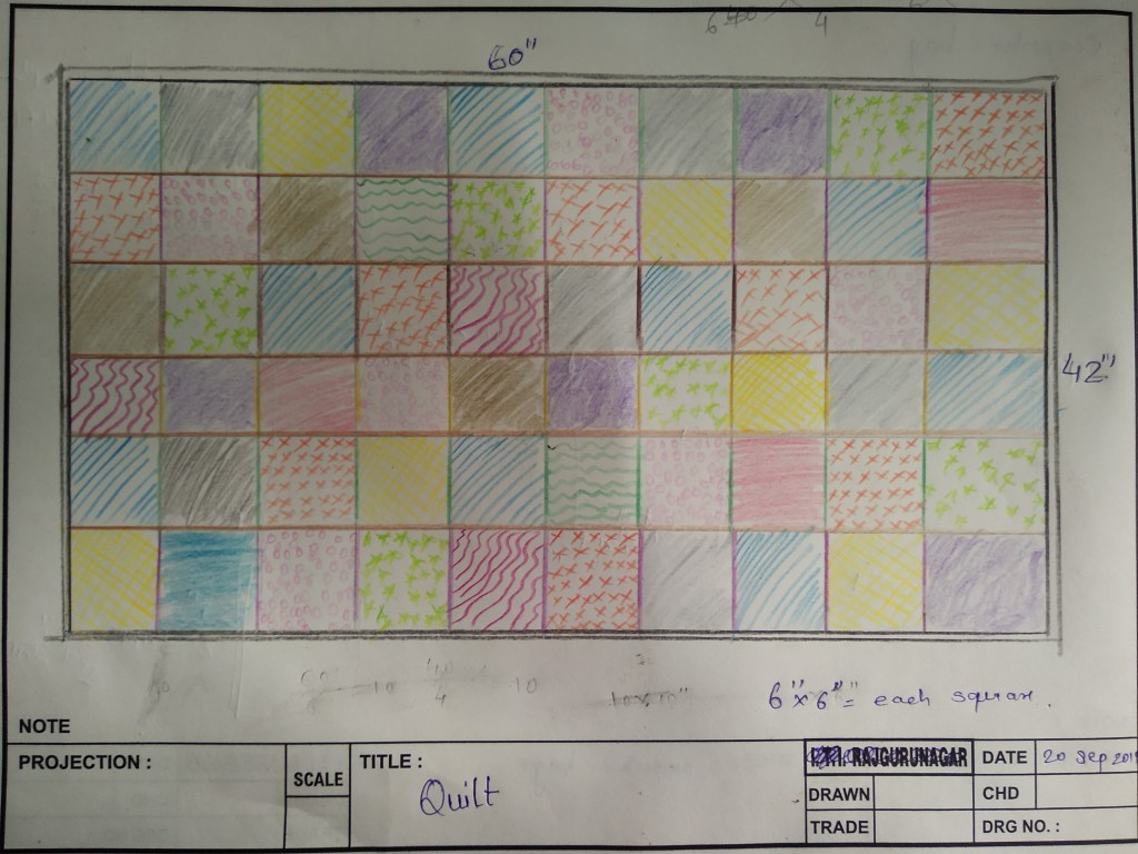 I draw a sketch of my imagination about quilting. This help me to select fabrics, colors and texture of fabrics.